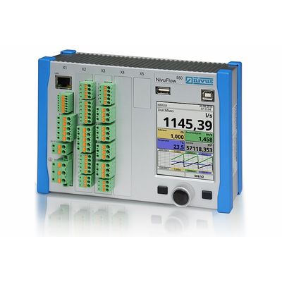 Due to DIN rail mounting options the compact transmitter saves space and can be installed easily in control cabinets. Moreover the NivuFlow 550 is available with a special protected field enclosure for use under harsh ambient conditions. The large graphic display permits quick and easy commissioning of the flow meter system.