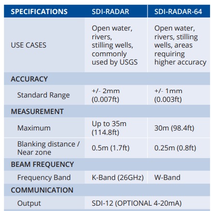 Use Case: Open water, rivers, stilling wells, areas requiring higher accuracy. Accuracy: +/-1mm (0.003ft).