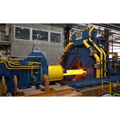 The SMX 650 Radial Forge comprises a highly rigid press frame in which four hydraulic cylinders with corresponding tools are arranged in an "X" shape. Compared to mechanical machines with eccentric drives, SMS Meer`s design impresses customers with its clear, simple and easily accessible layout. The hydraulic drive allows all important forging parameters to be selected freely and flexibly. Another significant advantage of the hydraulic drive (compared to mechanical drive solutions) is the fact that the maximum forging force is always available throughout the entire forging stroke.