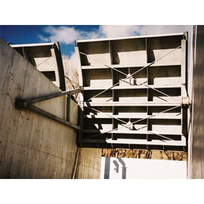 General Design: The radial gate disc is designed for mounting in wide unobstructed waterways or spillways. An accurately curved disc transfers the hydraulic load through the spanning strong ribs to the attached radial arms. The two radial arms, located at the sides of the opening, then transfer the load into the trunnion pins and abutments.
