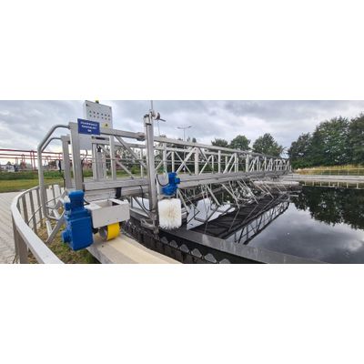 Esmil IRPO radial sludge scrapers are a comprehensive functional system consisting of equipment and technological devices such as a bridge truss, platform, scraper vanes, scrapers, and a geared trolley. This equipment ensures continuous, uninterrupted operation, contributing to a high level of water purification. With exceptional cleaning efficiency and gentle collection of sludge and floating materials, Esmil sludge scrapers are a crucial component in treatment facilities.