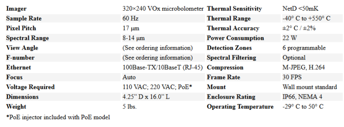 IV&C - Model FV-3543-1 -Radiometric Thermal Camera
