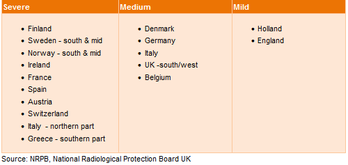 The presence of Radon depends on the geological structure of the underground. The following areas are classified as Radon contained: