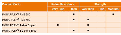Monarflex radon membrane product range