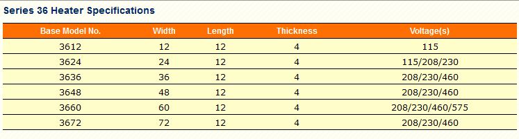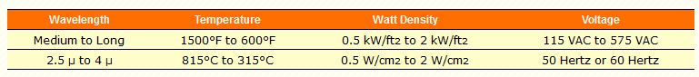 Glenro Radplane Series 36, 37, 38, and 39 ceramic face infrared panel heaters emit a consistent heat pattern from edge to edge. The infrared heat is uniform and closely controlled allowing the user to mount the ceramic face electric infrared heaters just inches from the product`s surface for efficient energy transfer. These heaters can be used in a variety of applications including, but not limited to preheating, drying, curing, and sintering. Ceramic face infrared heaters can be used in close-packed configurations for manufacturing processes that require uniform product heating over large heated areas; like preheating automotive carpet backing prior to molding. What distinguishes one series of heaters from another is its overall thickness or amount of insulation behind the heating element and its maximum operating watt density. Please follow the specification links below to learn more about our standard heater offerings.