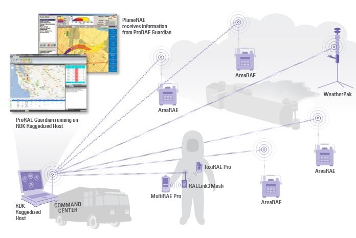 RAE Systems` ProRAE Guardian Wireless Safety System provides incident commanders with a real-time view of a variety of radiation and gas monitors deployed within a hazardous zone. The rapidly deployable wireless network of sensors helps incident commanders characterize and track the atmospheric threats within a region, and is a critical tool in ensuring the safety of the public and responders. For larger HazMat incidents, ProRAE Guardian easily integrates the monitoring assets of mutual aid departments using an intuitive, secure web-based interface.