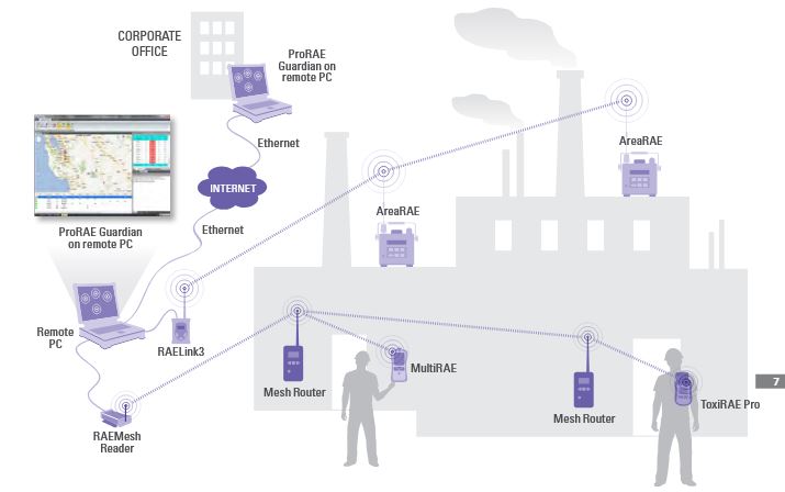 RAE Systems` ProRAE Guardian Wireless Safely System enables real lime tracking ol atmospheric hazards such as damnable gases, hydrocarbons, and specific chemical threats such as hydrogen sulfide and sulfur dioxide. Wireless personal, transportable, fixed, and survey gas monitors provide plant. safety and project managers an invaluable second layer of defense in addition to instrument based local alarm notification. The self forming, self healing network syncs automatically through wireless access points to provide rapid response capabilities to chemical and radiation releases. The ProRAE Guardian Wireless Safety System incorporates field proven solutions to elevate and deliver proactive safety at the workplace.