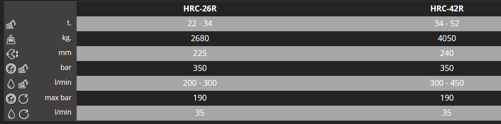 The latest development in the Hydraram product range is the Rail Cropper HRC-Series. The HRC-series hydraulic shear is used to efficiently cut tram, metro and railway tracks. This tool can adjust to your needs, since it can be mounted on a `normal` boom and a dipper boom. The whole attachment rotates 360°, making sure every cut is made with utmost precision! It is equipped with a special Heavy Duty rotor that guarantees high reliability and durability, allowing easy positioning and accuracy. There are 2 models available from 2680 to 4050kg, for carriers from 22~52 tons.