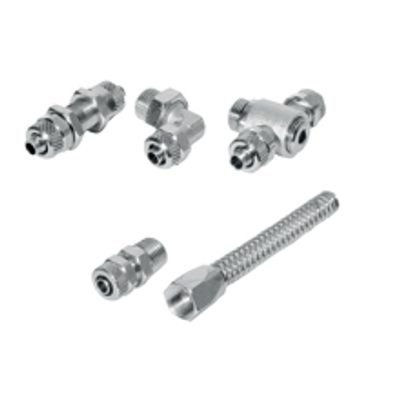 Rapid fittings for plastic tubes made of forged brass and machined brass bar are nickel plated treated. A locking nut is provided and can be tightened both manually and with a spanner. Maximum working pressure can be up to 25 bar (362 PSI) depending on tubing. Compressed air and any fluids compatible with material specifications are admitted.