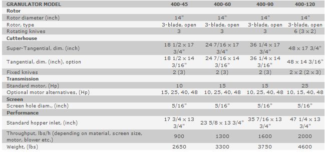Rapid - Model 400 Series -Medium Size Granulators