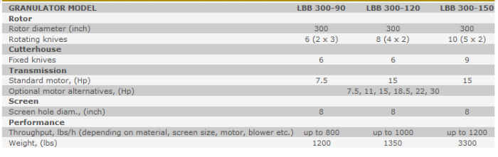 Rapid - Model LBB 300-Series -Low Built Base Granulator