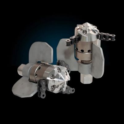 The Raptor Nozzle can be converted from a total blockage remover to a chain cutter with rigid guide skids capable of operating in 4” – 6” sewer lines (1/2” Raptor Chain Cutter) and 6” – 8” sewer lines (1” Raptor Chain Cutter) by unscrewing the drill head and attaching a chain retainer with chains. The Raptor Nozzle is a powerful nozzle capable of removing heavy obstructions caused by roots, grease, or any other solid organic material quickly. Its tempered stainless steel drill head is turbine-driven and spins in the range of 6000 and 12000 rpm, depending on water flow and pressure. The Raptor Nozzle succeeds where standard  hydromechanic tools fail!