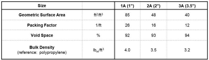High-performance random packing. As such, this packing supports high transfer rates, excellent gas and liquid dispersion characteristics, and good fouling resistance. General purpose, high-performance, free-flowing random packing for scrubber, stripper\ biological and other packed applications. Low Profile Rings (LPRs) are an innovative, hi-performance random packing. Available in a full spectrum of thermoplastics such as polypropylene, polyethylene, PVDF, CPC, ETFE, glass filled polypropylene and others, they offer high mass transfer rates, excellent gas and liquid dispersion characteristics, and superior fouling resistance. Their rounded shape excels in handling and ease of installation, resists nesting and settling and makes removal easy.