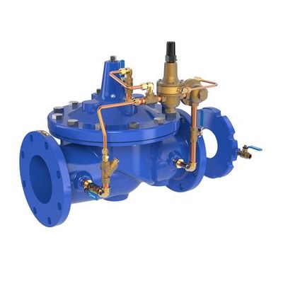 Cal-Val 49-01 and 649-01 Rate of Flow and Pressure Reducing Valves automatically reduce higher inlet pressure to a steady lower downstream pressure regardless of changing flow rate and/or varying inlet pressure, as long as the flow rate is below a preset maximum. They also prevent excessive flow by limiting flow to a preselected maximum rate using a direct-acting pressure reducing pilot and a rate of flow differential control. The pressure reducing pilot is responsive to slight variations in downstream pressure and immediately controls the main valve to maintain the desired line pressure.