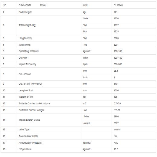 Ray Attachments - Model RHB140 -Hydraulic Rock Breaker for Excavator