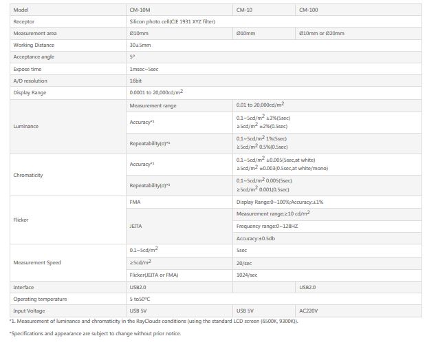 RayCloudsModel CM-10M -Luminance Colorimeter