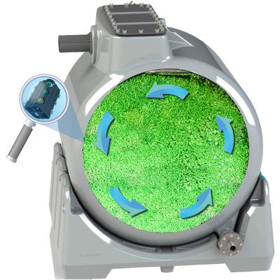 The round shape of the RBBR makes it easier to rotate the carrier mass, allowing carrier filling ratios up to 90% and reduced costs for air blowing. RBBR technology can be used in a wide range of water treatment systems. Currently the RBBR is utilized in municipal and industrial wastewater treatment, car washes and recirculating aquaculture systems (RAS). The carrier elements provide optimal surface for biofilm growth. The water cleaning takes place on the surface of the carrier, where a stable biofilm is formed. Air is blown into the bioreactor to make the carrier rotate. The circular shape of the reactor ensures that the whole carrier mass is moving, leaving no dead zones or excess biomass inside the reactor.