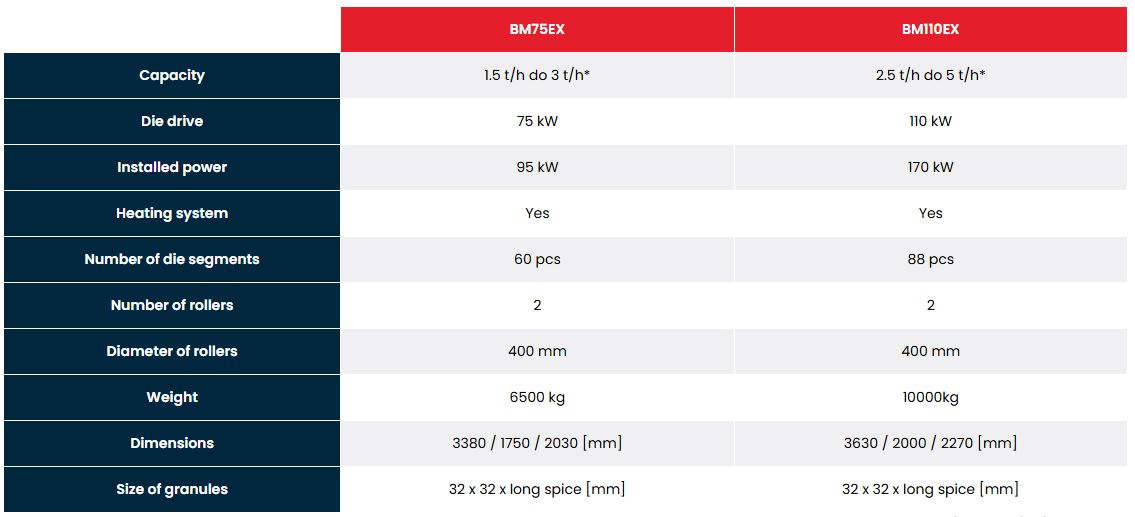 For comparison, the cost of methods used methods used so far is at the level of PLN 150/m3 with a bulk density of about 450 kg/m3. The level of costs when using BM technology technology results in costs at the level of 30 PLN/m3 at a bulk density of 650 kg/m3. density of 650 kg/m3.