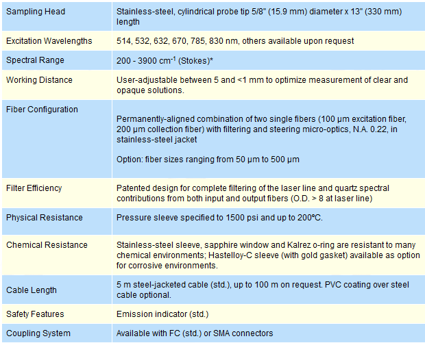 A new option for process development and process monitoring applications, the Reaction RamanProbe is a versatile, cost-effective probe for reactions at moderately elevated temperatures and pressures. Due to the compact design, the optical head can be placed at the tip of the 5/8" diameter probe for maximum throughput. The Reaction RamanProbe can be made several feet in length to achieve very long immersion depths.