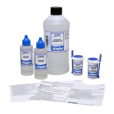 Reagent Pack, Buret, Hardness (calcium/total), EDTA, 1 mL = 1 mg. Metal ions may cause interference; to prevent, add titrant containing EDTA to sample before buffer and indicator, then test as normal making sure to count drops of titrant added initially in total required to reach endpoint. If interference still occurs, dilute sample with DI water as necessary and retest. Quats may cause interference.
