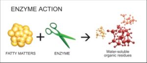 Enzymes transform organic substances irreversibly into water-soluble residue. It is this action which means that enzymes are considered a powerful cleaning agent.