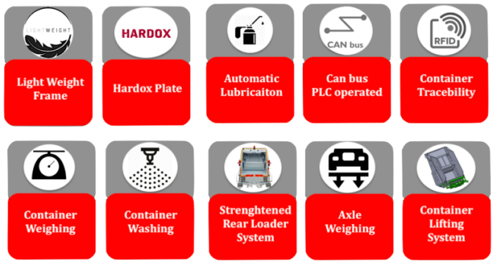 - Increased Efficiency: The compactor system reduces the volume of waste, allowing for more waste to be collected in a single trip, reducing the number of trips and the time needed to collect waste.