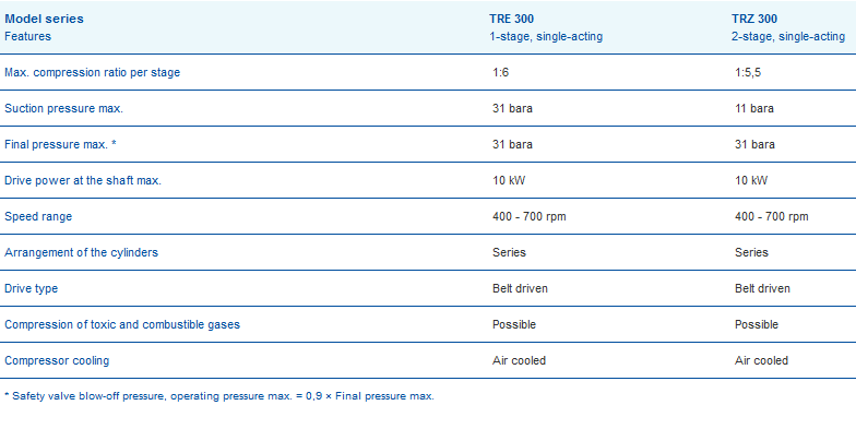 Compressors of the TRx 300 series can be designed in one or two stages.