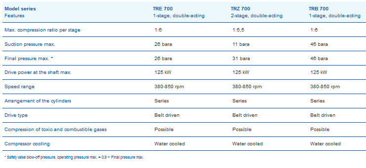 Compressors of the TRx 700 series can be designed in one or two stages.