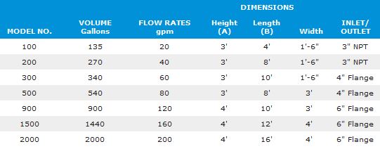 These oil-water separators include the same corrugated coalescing plate assembly as the PSR Models and also include a highly efficient polypropylene media final polishing coalescer that is designed to remove free oil droplets down to 20 micron in size and produce a free oil and grease effluent quality of 10 ppm or less. Rectangular design is for above grade to below grade installations in a concrete vault.