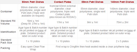 All of our prepared plates are manufactured within our clean room facility with quality checks undertaken at each stage of the manufacturing process. Each batch is quarantined after filling and allowed to naturally condition. At time of supply, each batch is 100% inspected prior to final packing.