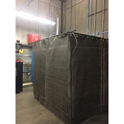 Sonic-Shield has developed a modular sound dampening Acoustical Curtain consisting of our 1 lb/sf Sonic-Shield® Noise Barrier together with our 2” thick Sonic Fiber sound absorption material. We believe that Sonic Curtains offer a better alternative to the typical quilted “acoustic blankets”, which have limited abilities to block and absorb sound. Each standard size curtain measures 54" by 96" and weighs approximately 50 pounds. Custom sizes are available depending on each individual situation. The curtains come with high quality hook and loop fasteners on the edges and grommets on the top.