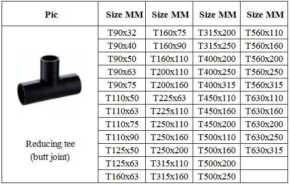 Reducing tee (butt joint). Size MM: T90x32.