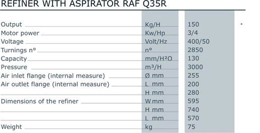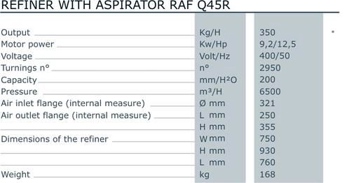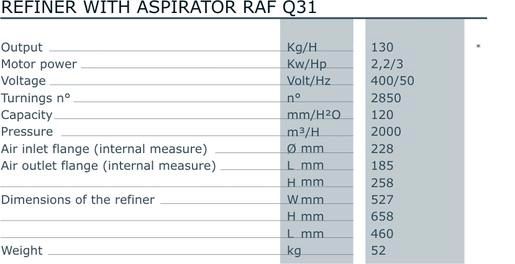 It is supplied in different models and is essential for a significant increase in hourly capacity of the briquetting press and high quality briquettes. The refined material can be blown up into the filtering unit or minisilo by means of the aspirator.