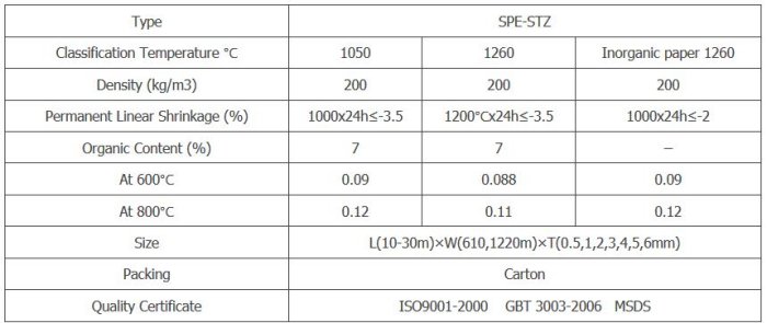 Super - Model SPE-STZ -Refractory Bio-soluble Fiber Paper