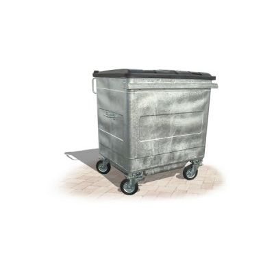 With flat lid made of plastic or steel. According to DIN EN 840-2. Body made of quality steel sheet. Embossed Front, back and side walls. Rounded container corners. Round reinforcing frame. Body and frame completely welded. Hot-dip galvanized. Drainage plug at the bottom. Crimp bar / receptacle according to DIN EN 840-2. 4 steering castors.