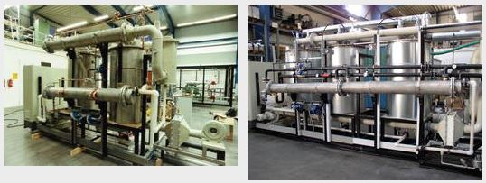 The contact water is then treated. Prantner boundary layer evaporators (GVD) and strip units are primarily used. The pollutant is stripped out of the water and returned to the inlet of the unit where it is once again picked up by the activated carbon.