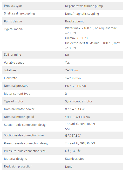 AY-2241-PM – Regenerative turbine pump with magnetic coupling and speed-controlled synchronous motor.