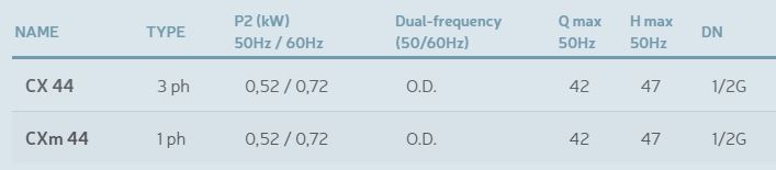 Continuous duty S1. 2 pole motor. Insulation class F. Protection IP42. Working tolerance: +/- 10%. Liquid temperature (with anti-freeze additive): -20 °C / +90 °C. Limit ambient temperature: +40 °C. Normal priming, manometer suction up to 5m. For clear waters/oils and slightly dilutions, without abrasive substances.
