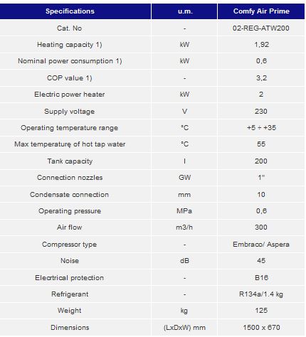 We offer a hot tap water heater with a heat pump in the air-water system Comfy Air Prime 200 l.
