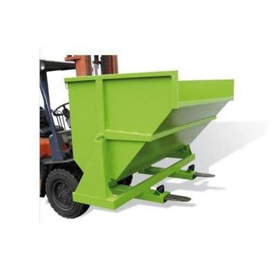 Capacity : 550 to 2500 litres. Reinforced bin with 3-ply blunt rim. Stiffeners reinforce bin front, sides and bottom. Rigid tubular chassis : 4 and 5 mm sheet metal. Safety latch for transport (disengage before tipping). Lever for manual tipping. Fork sleeves can be modified on request. Aperture : 170 x 70 mm., Spacing : see F in table. Pedestal-mounted models can be used with pallet trucks (between fork sleeves). Safety chain included. Options on request.