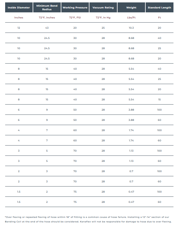 Lightweight and flexible. External helix provides for easy drag. Rated for both suction and discharge. Clear sidewall permits visual check of material flow.