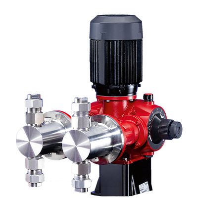 The REKOS ZKR is a powerful double-piston dosing pump designed for precise and reliable dosing in industrial applications. With a flow rate of 420 l/h at 50 Hz (504 l/h at 60 Hz) and a max pressure of 10 bar, it is ideal for demanding processes. It features two parallel stainless steel heads with robust pistons and PTFE seals rated for up to 40 bar, ensuring long life and tightness. Stroke length is manually adjustable from 0–100% for linear dosing control, ideal for proportional dosing. Spring-loaded stainless steel valves (DN25) and FPM seals ensure reliability. G3/4 female threads allow easy system integration. A 0.55 kW (50 Hz) or 0.65 kW (60 Hz) motor ensures efficient, dependable operation. Perfect for chemical processing, water and wastewater treatment, and other critical dosing tasks. Rugged design ensures long-term durability.