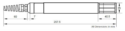 The dual-measurement probe includes a temperature sensor with electrical and performance characteristics matching those of a 100 Ohm platinum resistance thermometer, conforming to British Standard Institution BS 1904:1984, tolerance Class A.