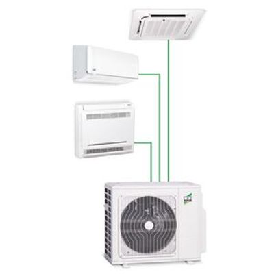 With the multi-split air conditioning system, up to 5 indoor units can be connected to one outdoor unit. Since it is possible to air-condition 5 rooms simultaneously with just one outdoor unit, this is a very space-saving and economical room climate solution. The various indoor units allow for numerous combinations. For optimal air conditioning of buildings, several multi-split systems can be combined with each other or with single-split systems.