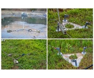 The unmanned FLUMP dredge, or the Rotomite, when operated in a cabled traverse system, are positioned and moved, either manually or automatically, along a tensioned galvanized steel cable extending across the lagoon or pond. The cable is attached at either end of the lagoon or pond to a galvanized steel cable affixed to sturdy steel posts set firmly in the ground (generally in concrete foundations). This form of traverse system is built with either two or four posts. Lateral positioning of the FLUMP is either manual, or electric by shore based electric winches.