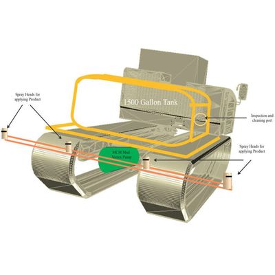 CAPS P8 comes fully equipped for your daily cover needs. All controls are conveniently placed in the cab of the tracked vehicle. The cover mixture is mixed and then loaded into a 1500 gallon tank. Available with either a progressive cavity pump or a high powered vortex pump. The P Series can apply an even cover while traveling upwards of 7 mph on 60% uphill/downhill grade and 40% sidehill grade. Comes with either a mega head hydraulic spray head valve or a series of BEX 50 degree 500 gpm Nozzles paired with a mega remote electric cannon mounted on the front of the machine.