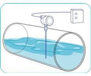 A calibration is performed against the an oil condition and a water condition. The active portion of the probe is fully submerged into the liquid and sized to your targeted range of interest. As the oil/water interface or emulsion crosses or envelopes the probe, the capacitance change is tracked and an output of 4-20 mA is provided.