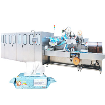 The removable wipes production line is used to manufacture disposable wet wipes for household cleaning. Fully functional servo drive and speed of 50 packets/min. The removable wipes production line is used to manufacture disposable wet wipes for household cleaning. Fully functional servo drive and speed of 50 packets/min. Automatic connection between the placing frame and the film shaft reduces the time to replace the raw materials and effectively improves the working efficiency.