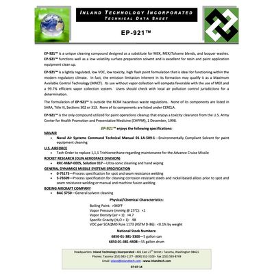 EP-921® is a lightly regulated, low VOC, low toxicity solution with a high flash point that is ideal for functioning within the modern regulatory climate.