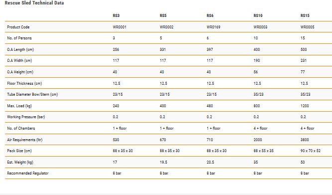 The RS Series Rescue Sleds are flood water rescue craft for inshore crisis rescues and flooded urban and coastal areas. The Rescue Sled is available in seven standard sizes 3, 5, 6, 10 & 15 man. The 3, 5 & 6 person sleds are ideal for swift-water and narrow access rescue. Thea 10 & 15 person sleds have a larger floor space and load capacity which are more suited for emergency evacuation situations.